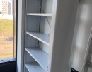 Проанализировали характеристики помещения, разработали оптимальную схему расстановки. Произвели и установили передвижные двусторонние стеллажи для библиотеки вдоль основной стены и один стационарный односторонний стеллаж, аккуратно встроенный в нишу. Конструкция и параметры стеллажей (высота, глубина, количество полок) были рассчитаны с учётом веса книг и требований к нагрузке.