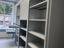 Чтобы сохранить комфортную ширину прохода, использовались разные форматы дверей: на широких участках — распашные, на узких — двери-жалюзи. Такое решение позволило обеспечить удобный доступ к каждой секции, не загромождая пространство.