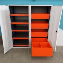 Для хранения мелких деталей применяются съёмные выкатные ящики с перегородками, которые позволяют чётко организовать пространство. Каждый метиз, крепёж или элемент размещается в отдельном отсеке, что исключает перемешивание, ускоряет поиск и снижает риск потерь.